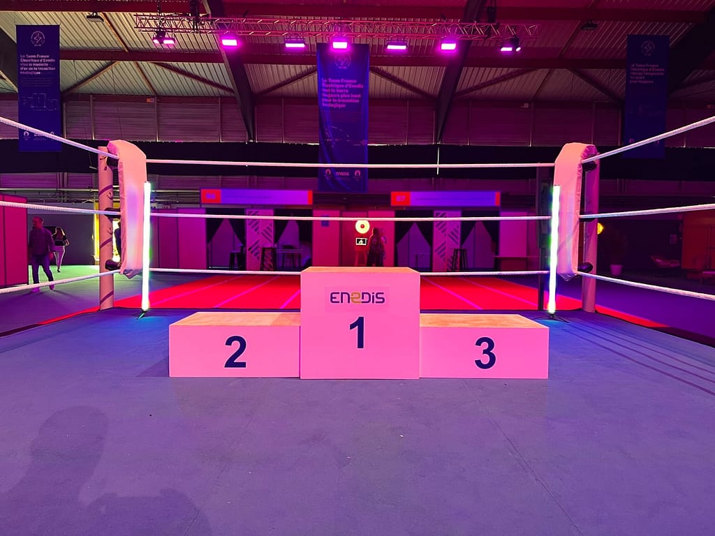 Location de ring 5x4m – Idéal pour vos projets sportifs et audiovisuels Découvrez notre ring de 5x4m au sol, conçu pour répondre à tous vos besoins, que ce soit pour des entraînements, des démonstrations ou des tournages. Ce ring, ouvert